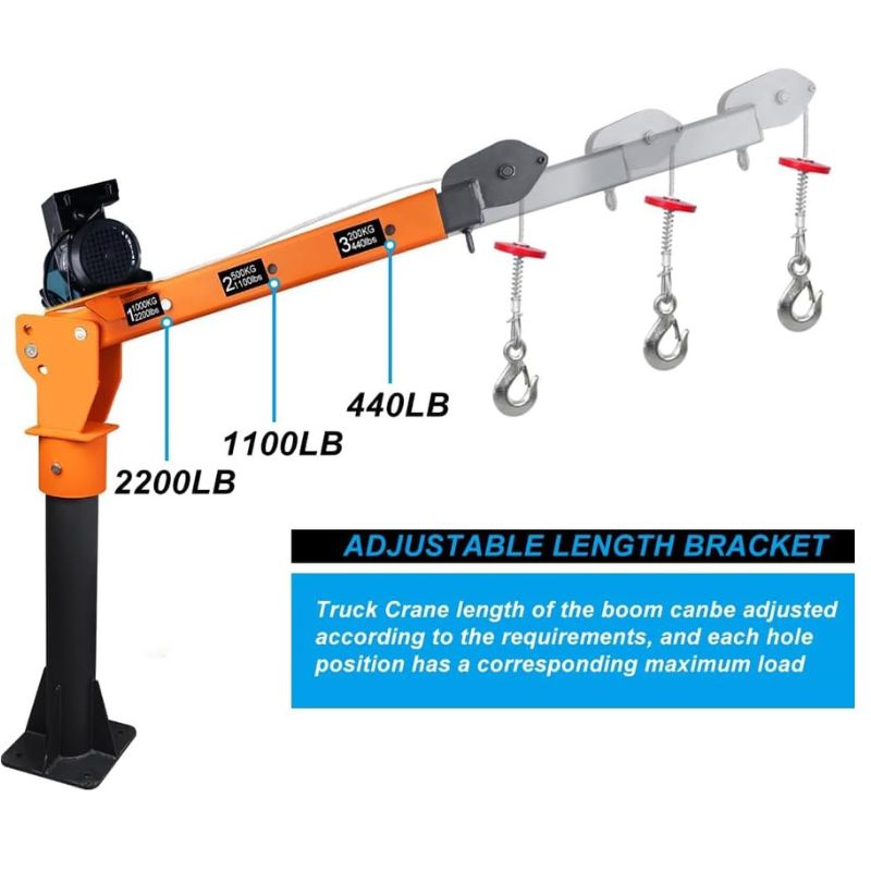 Nueva grúa plegable del camión del alzamiento de 2200 libras, con el alzamiento eléctrico 110V, grúas de horca de acero pintado, fuerza de tracción de 1320 libras, para fábricas, almacenes.
